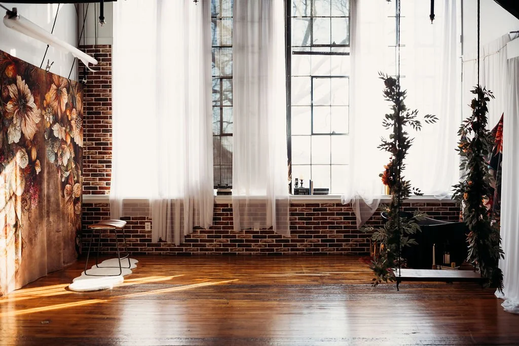 Our studio, Studio 270, is Atlanta and Metro Atlantas most luxurious photography studio. Located inside of The Threadmill from the 1930’s in Austell, Our 2000sf fully furnished photography studio, with it’s rich legacy dating back almost a century, offers an array of breathtaking areas to fulfill every vision. With 20-foot ceilings and windows, stunning hardwood floors, and a timeless ambiance, Studio 270 is a haven for creativity.